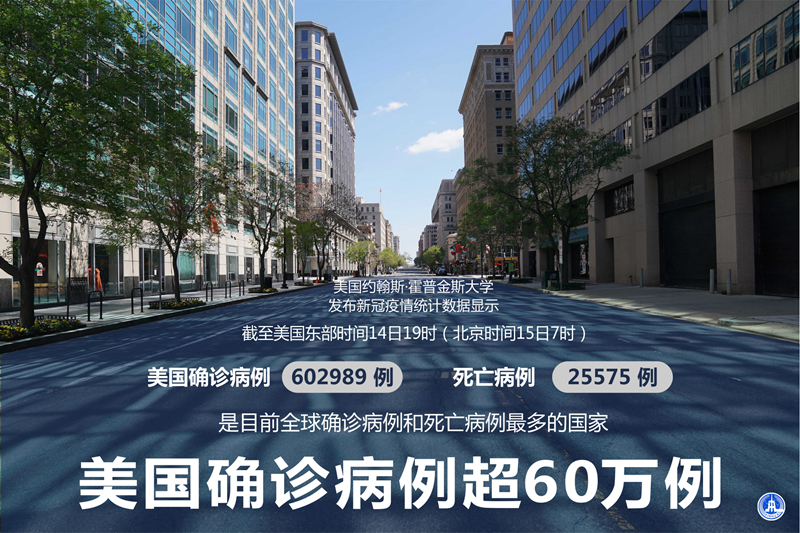 數(shù)據(jù)顯示,截至美國(guó)東部時(shí)間14日19時(shí)(北京時(shí)間15日7時(shí)),美國(guó)確診病例升至602989例,死亡病例達(dá)25575例。