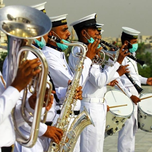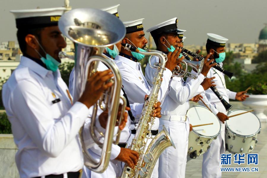 3月23日,樂(lè)手在位于巴基斯坦卡拉奇的國(guó)父真納墓參加“巴基斯坦日”紀(jì)念活動(dòng)。